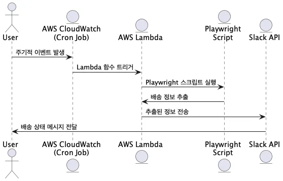 AWS Lambda, Playwright를 이용해 배송현황 추출 후 Slack API를 통해 운영 채널로 전송, 실시간 확인