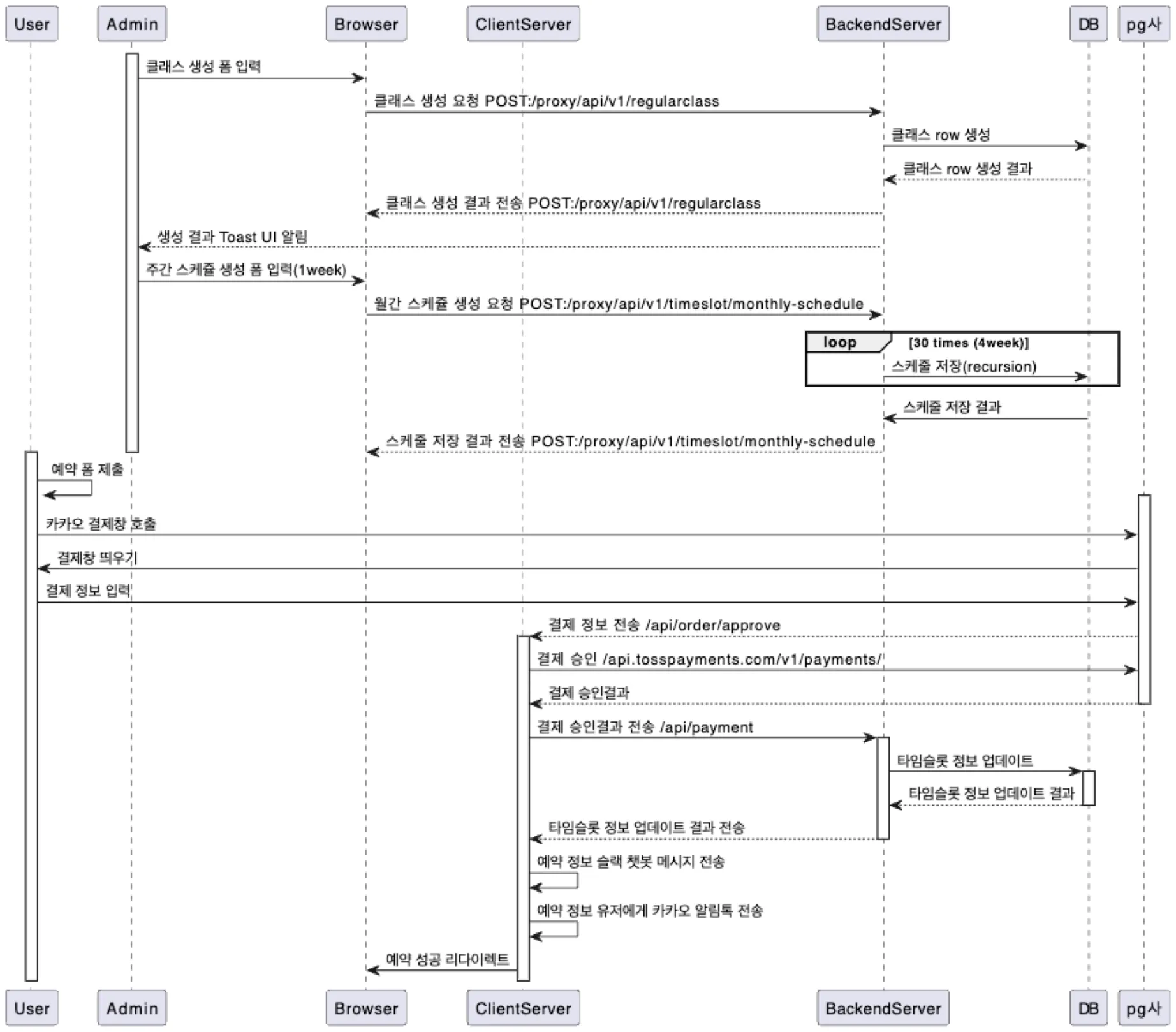 [예약 플랫폼] 원하는 클래스의 타임슬롯 선택, 예약 정보 입력 후 토스 페이먼츠(Toss Payments) 결제 및 예약 기능