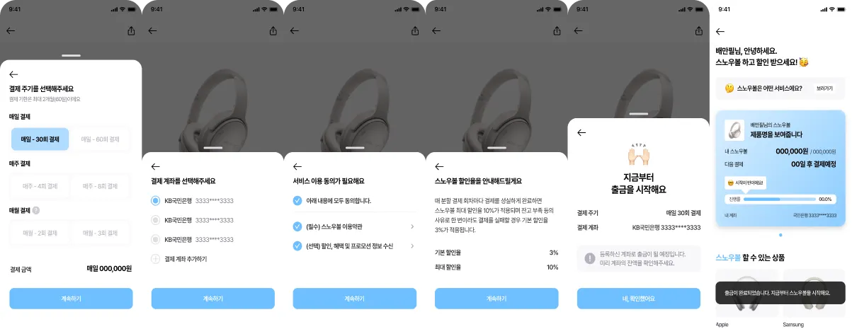 조각 결제 시작 단계 구현 (상품선택, 결제 주기 선택, 계좌등록 및 리스트 불러오기, 동의하기)